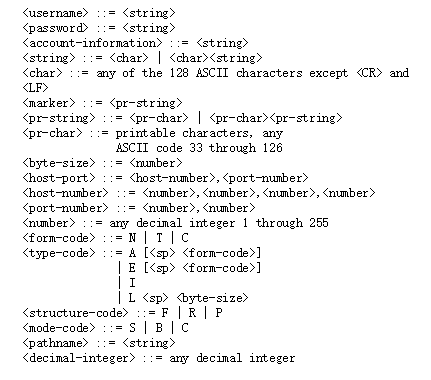 这些命令是通过控制连接传输的Telnet字符串,其中FTP命令字符串对大小写不敏感(例如,RETR、Retr、retr、ReTr都可以表示retrieve命令),参数字段的所有字符都是ASCII字符,